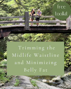 5 gentle wellness tips YOU can start to incorporate to trim the belly fat AND improve other symptoms of perimenopause / menopause. The workbook will help you put your own plan together.